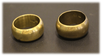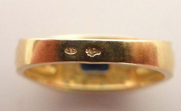 On trouve ici un exemple d’arnaque très courante, une bague en laiton, avec un poinçon 750 :
