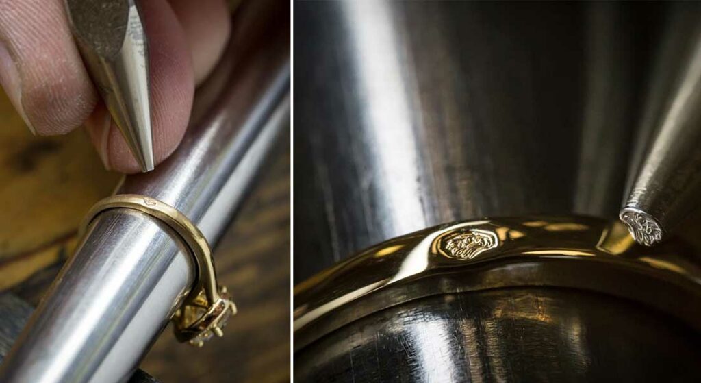 On distingue deux types de poinçons : le poinçon de garantie et le poinçon de maître ou de responsabilité. À noter qu’un poinçon n’est pas obligatoire sur les ouvrages en or de moins de 3g en France.